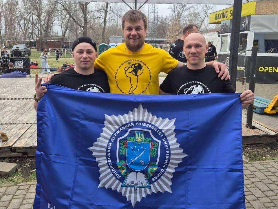 Дніпровський державний університет внутрішніх справ представили військові ветерани, що тренуються та працюють на базі освітнього закладу: помічник чергового чергової частини відділу організації служби Богдан Демченко та фахівець спортивної команди відділу соціально-гуманітарної роботи Олександр Грищук.