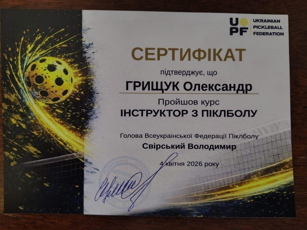 Ветерани Олександр Грищук та Сергій Штим також долучилися до турніру: вони не лише виступали на змаганнях, а й успішно пройшли підготовку та отримали сертифікати «Інструктор з піклболу», що дозволить їм надалі розвивати цей напрям серед ветеранської спільноти.