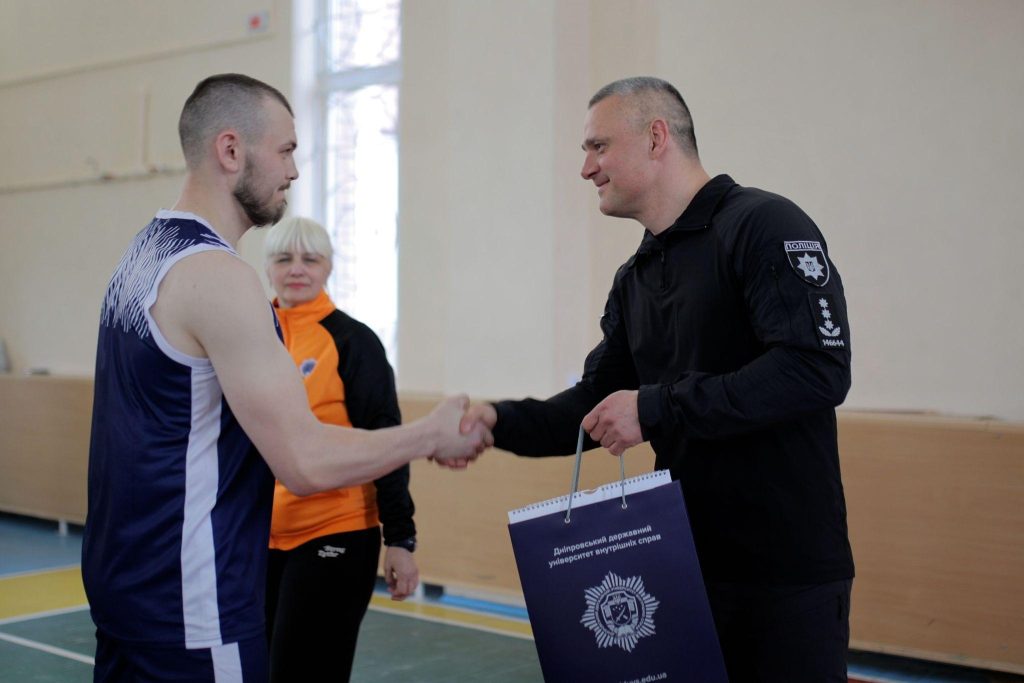 Товариський волейбольний матч між командами ГУНП в Луганській області та військовими ветеранами, які тренуються на базі ДДУВС, організовано кафедрою спеціальної фізичної підготовки за ініціативи керівництва закладу вищої освіти.