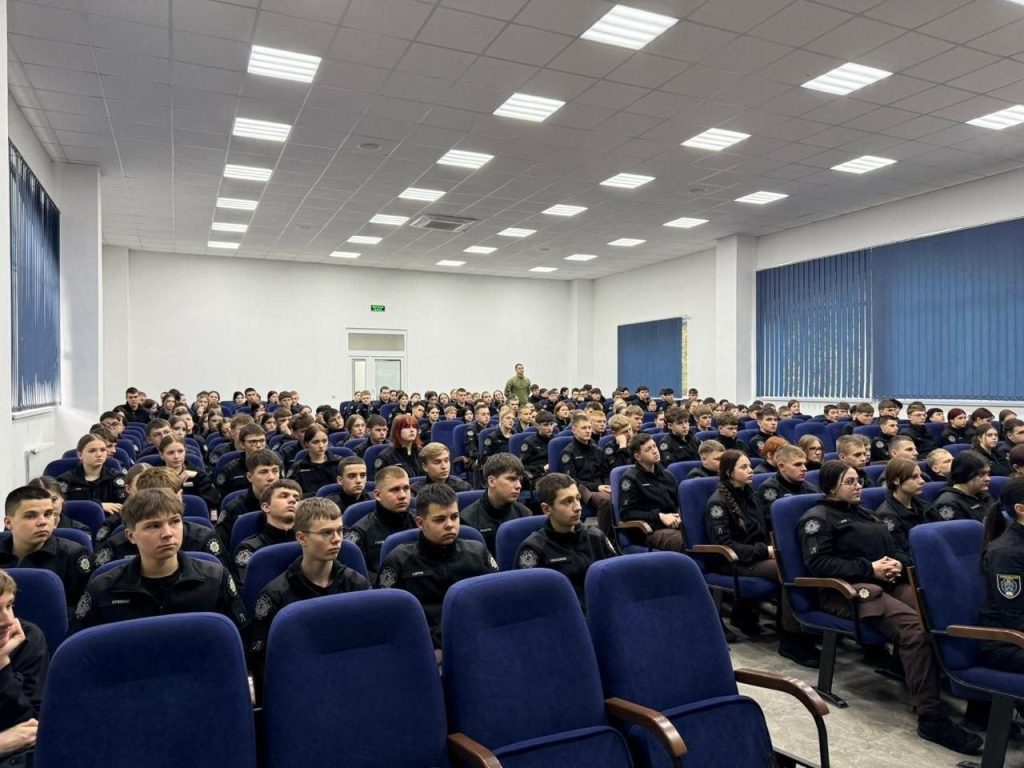 Так, власним досвідом із ліцеїстами поділилися голова курсантсько-студентського самоврядування, курсант факультету підготовки фахівців для органів досудового розслідування НПУ Максим Хаджийський, курсант факультету підготовки фахівців для підрозділів кримінальної поліції НПУ Єгор Чурсін та студентка ННІ права та інноваційної освіти Софія Сіліна. Вони підкреслили, що навчання в університеті передбачає системне поєднання теоретичних знань із практичною підготовкою, яка щороку вдосконалюється під час навчальної практики.