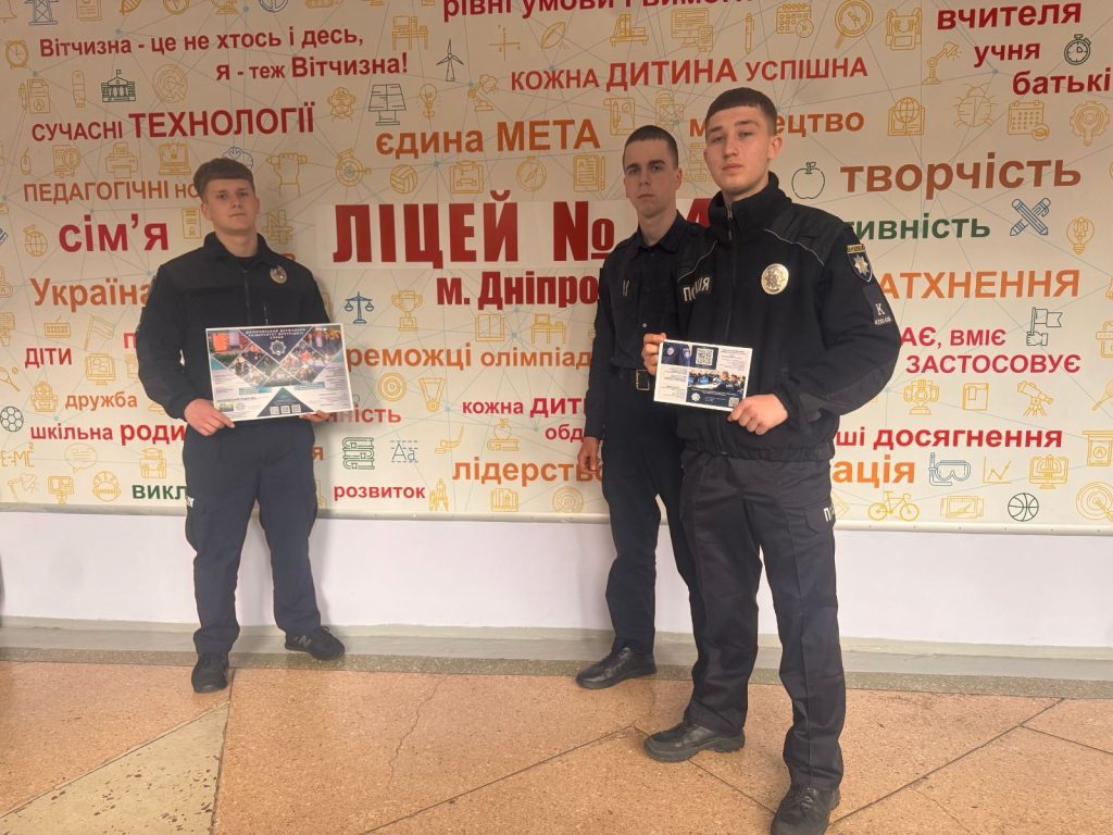 Також курсанти факультету провели очну зустріч із учнями Дніпровського ліцею №54, де проінформували учасників про перелік необхідних документів для вступу та основні етапи відбору кандидатів. Здобувачі надали вичерпні відповіді на питання від аудиторії, зокрема щодо структури освітнього процесу, змісту підготовки майбутніх слідчих та особливостей проходження практики.