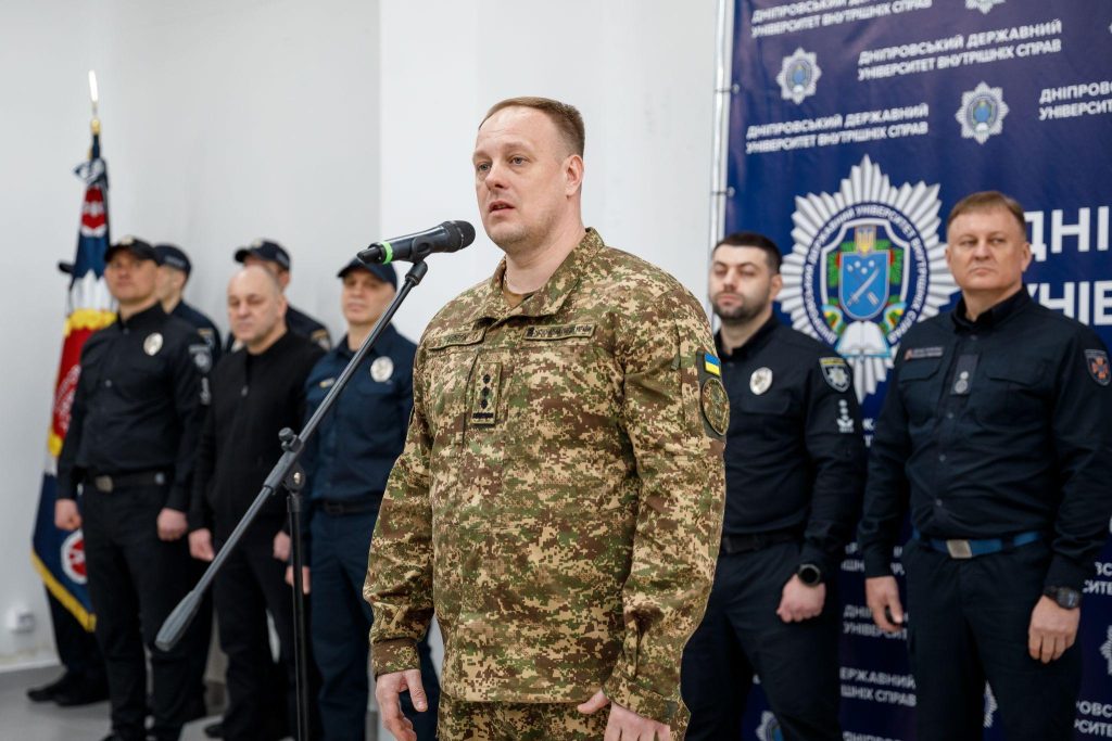 З напутніми промовами виступили також: Голова Дніпропетровської обласної державної адміністрації – начальник обласної військової адміністрації, генерал поліції третього рангу Олександр Ганжа, начальник ГУНП у Луганській області, полковник поліції Олександр Моргунов, тимчасово виконуючий обов’язки начальника ГУНП у Дніпропетровській області, полковник поліції Олександр Миргородський, начальник Головного управління ДСНС України у Дніпропетровській області, генерал-майор служби цивільного захисту Юрій Корецький, тимчасово виконуючий обов’язки начальника Головного управління Служби безпеки України у Дніпропетровській області, бригадний генерал Дмитро Нєвєдров, Начальник Центрального територіального управління Національної гвардії України, Герой України, полковник Денис Шлега.