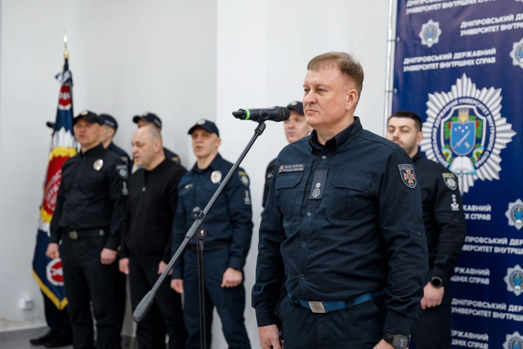 Тимчасово виконуючий обов’язки ректора ДДУВС Ігор Магдаліна звернувся до випускників, зазначивши, що вони обрали непростий шлях, та побажав молодим офіцерам продовжувати вдосконалювати навички, постійно підвищувати свій професійний рівень.