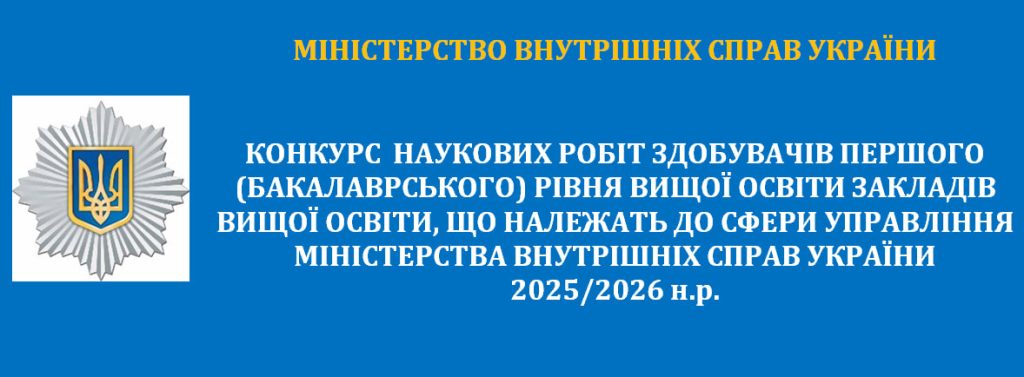 Конкурс наукових робіт здобувачів першого (бакалаврського) рівня вищої освіти закладів вищої освіти, що належать до сфери управління Міністерства внутрішніх справ України, у 2025/2026 н.р. проводиться, відповідно до Наказу МВС, у жовтні – травні поточного навчального року.
