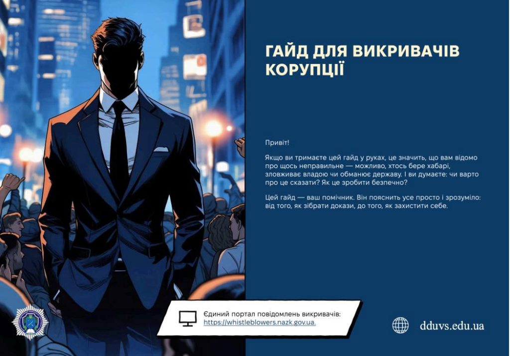 Викривачеві Головна сторінка » Уповноважений з антикорупційної діяльності » Викривачеві – Положення про організацію роботи із прийняття та попереднього розгляду повідомлень викривачів про можливі факти корупційних або пов’язаних з корупцією правопорушень, інших порушень Закону України «Про запобігання корупції» у Дніпровському державному університеті внутрішніх справ. – Єдиний портал повідомлень викривачів – Порядок роз’яснення особливостей перевірки повідомлень від викривачів – Не зволікай – викривай (як подати повідомлення через Єдиний портал повідомлень викривачів?) b25 – Пам’ятка викривачеві b1 – ПОРАДНИК ВИКРИВАЧЕВІ pv – ГАЙД для ВИКРИВАЧІВ КОРУПЦІЇ gv