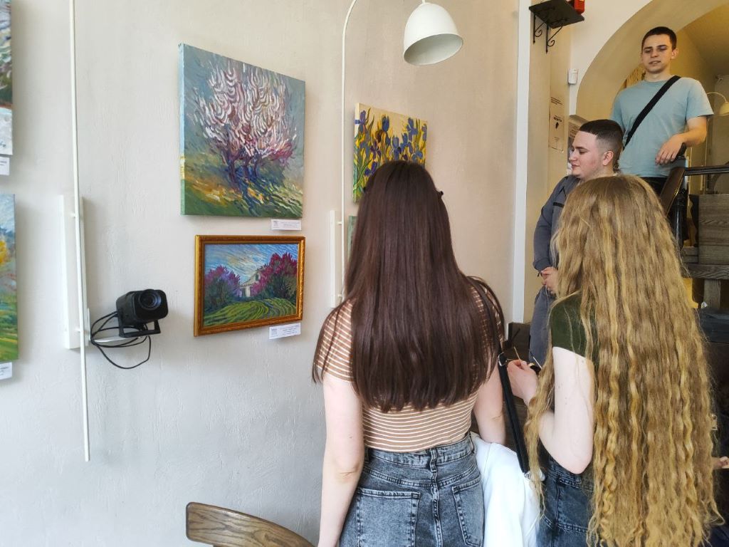Another discovery for the cadets was the exhibition “Spring Rhapsody” by Dnipro artist Oleksandra Malyshko. This collection featured oil-on-canvas paintings, all crafted in the artist’s unique style—linear impressionism, a technique that fuses elements of both impressionism and linear art.