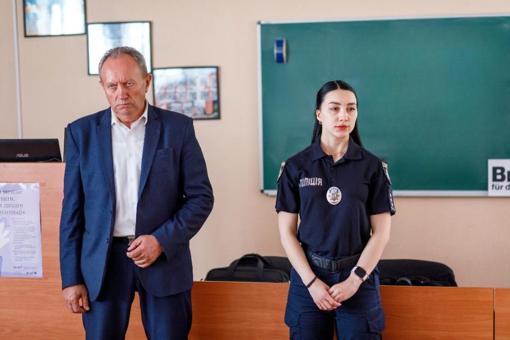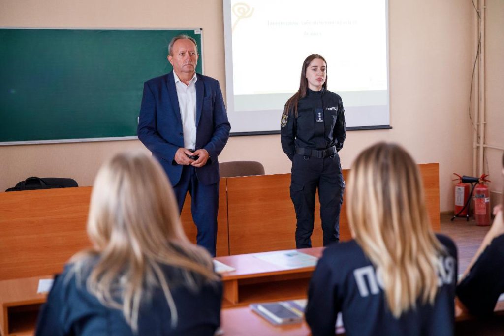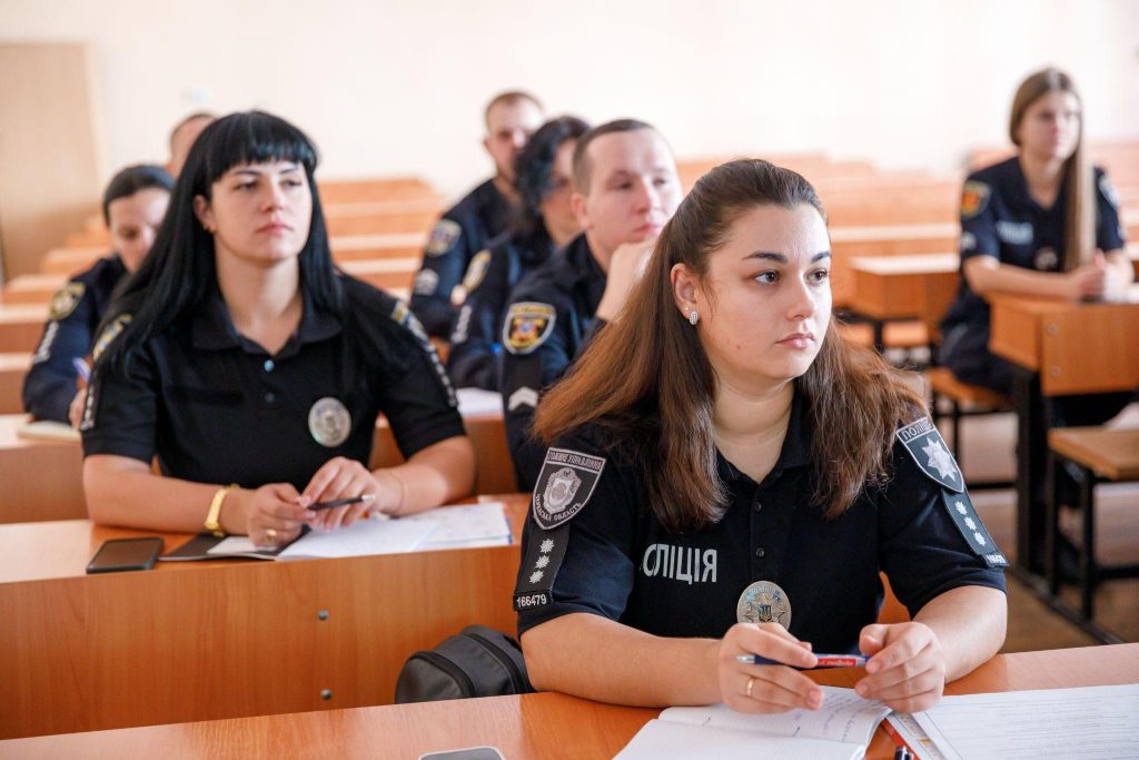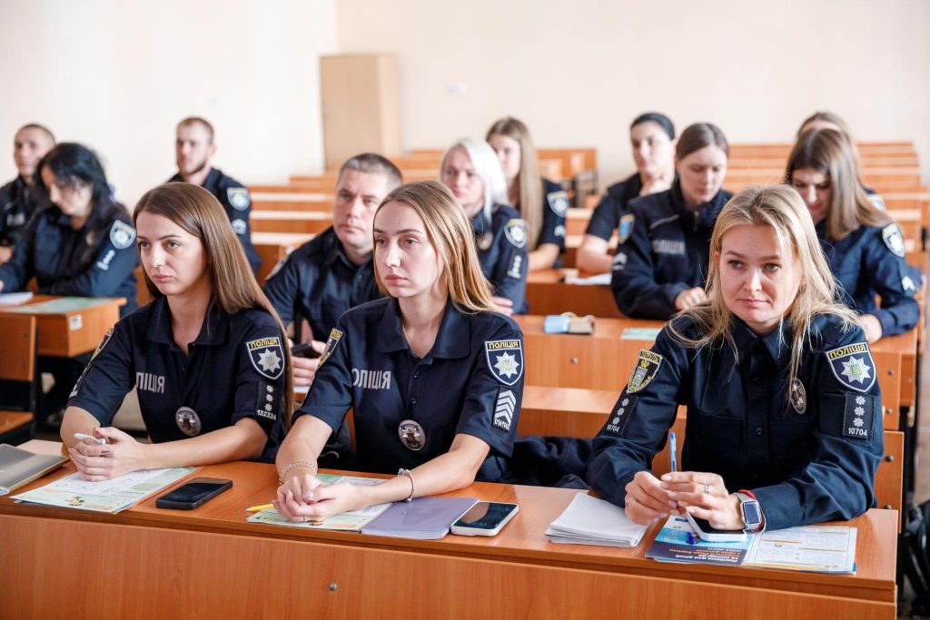 To enhance the practical component, a meeting was held for future educational security service police officers with Inspector of the Department of Mobilization Work, Territorial Defense, and Civil Protection of the Organizational-Analytical Support and Operational Response Directorate of the Main Directorate of the National Police in Dnipropetrovsk Region, Senior Police Lieutenant Kateryna Hunko, and Senior Inspector of the Organizational-Analytical Department of the same Directorate of the Main Directorate of the National Police in Dnipropetrovsk Region, Senior Police Lieutenant Yelyzaveta Vilkhova.