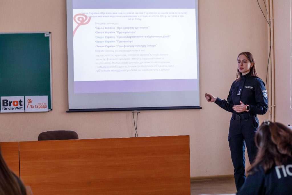Practical workers, as trainers of the Public Organization “La Strada-Ukraine,” conducted a practical session dedicated to the topic of legislative regulation of countering bullying. During the event, the following issues were addressed: