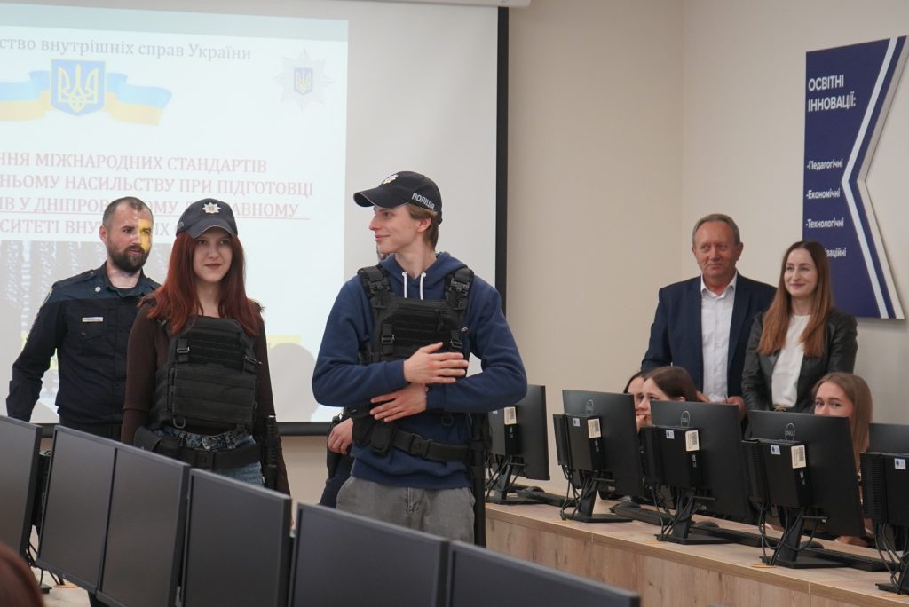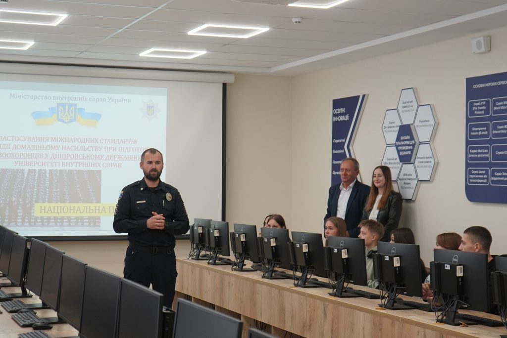Practical workers joined the class, namely: the head of the Educational Security Service Department of the Patrol Police Directorate in Dnipropetrovsk Region, Police Captain Denys Shulha, an inspector of the same department, Police Lieutenant Volodymyr Starchenko, as well as police officers who will work in the Educational Security Service in the future.