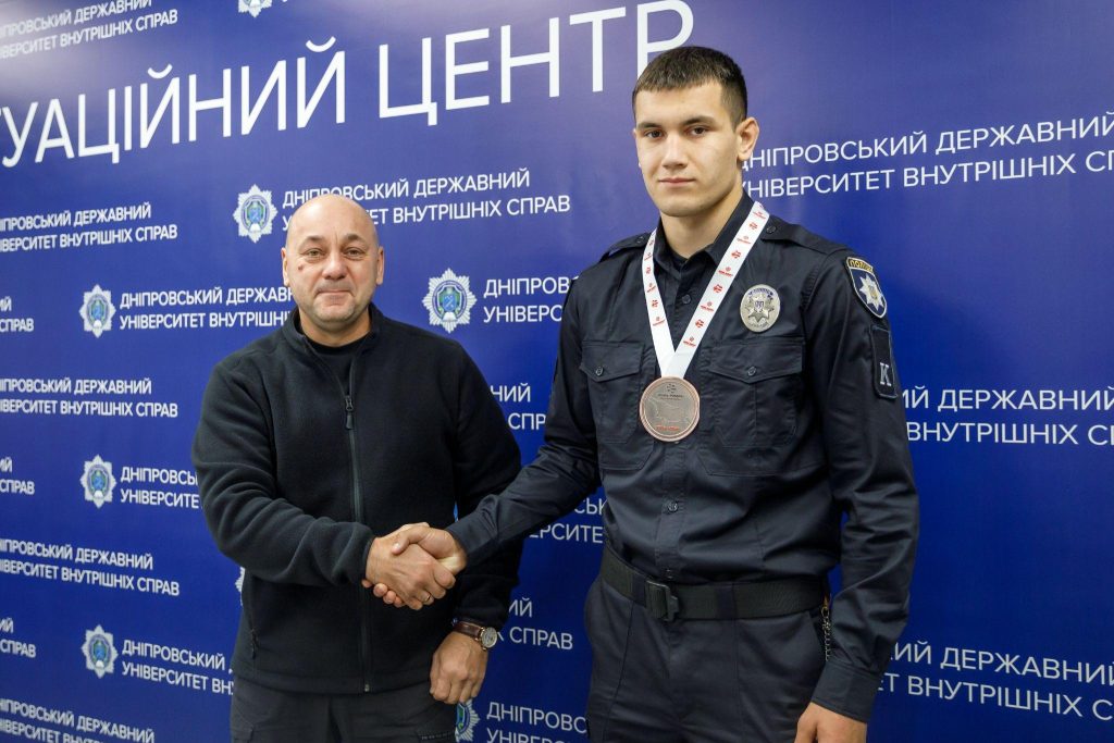 Acting Rector of DSUIA Ihor Mahdalina awarded a cadet of the Faculty of Training Specialists for Pre-Trial Investigation Bodies of the NPU Denys Lushpayev – a prize-winner of the World MMA Championship, which was held in Tbilisi (Georgia).
