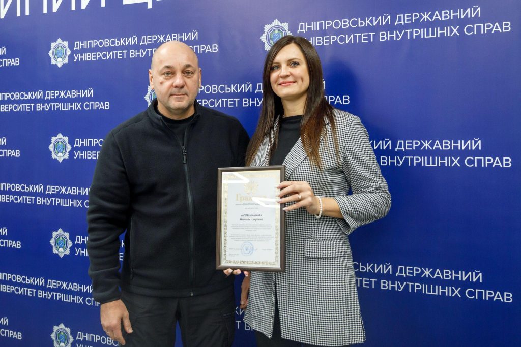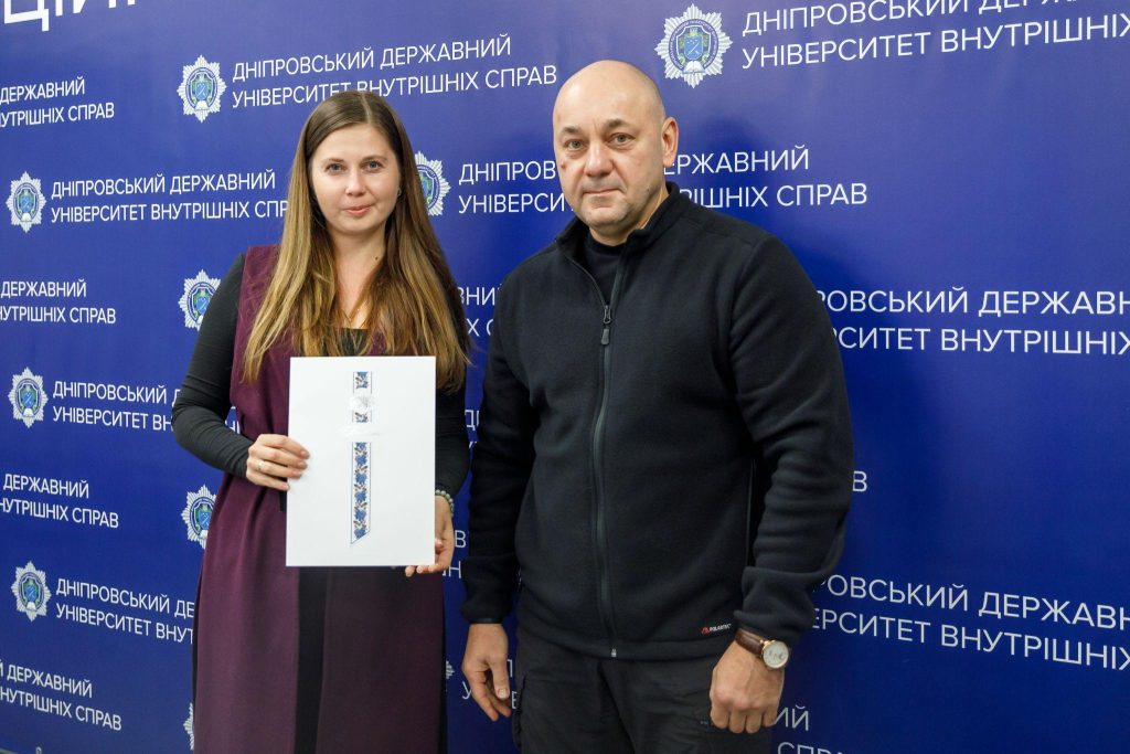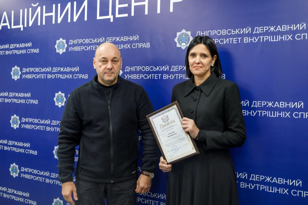 For exemplary performance of official duties, conscientious and dedicated work, high professionalism, active civic position, and on the occasion of Ukraine’s Independence Day, a certificate of the Dnipropetrovsk Regional Council was awarded to the Head of the Department of Language Training of DSUIA Iryna Tsarova.