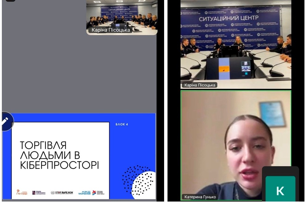 The training was organized by the trainer of the NGO “La Strada” Kateryna Hunko together with the associate professor of the Department of Administrative Law and Procedure of DSUIA, Senior Lieutenant of Police Karina Pisotska.