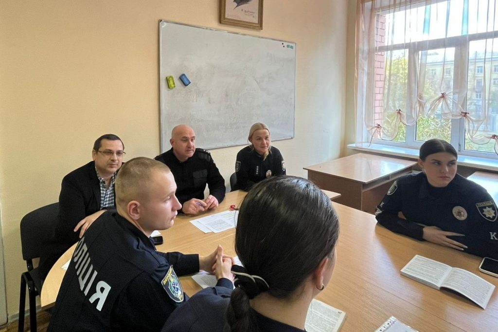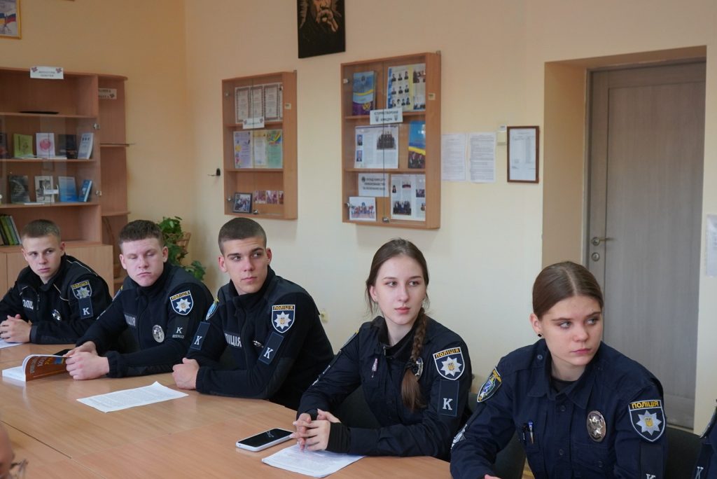 The meeting was attended by cadets, academic staff, and Acting Dean of the Faculty, Police Lieutenant Colonel Ihor Shevchenko. During the discussion, participants addressed the topics “Military and Patriotic Education of Ukrainian Youth in the Context of Social Issues” and “Prevention and Counteraction to Gender-Based Violence and Violence Against Children under Martial Law.”