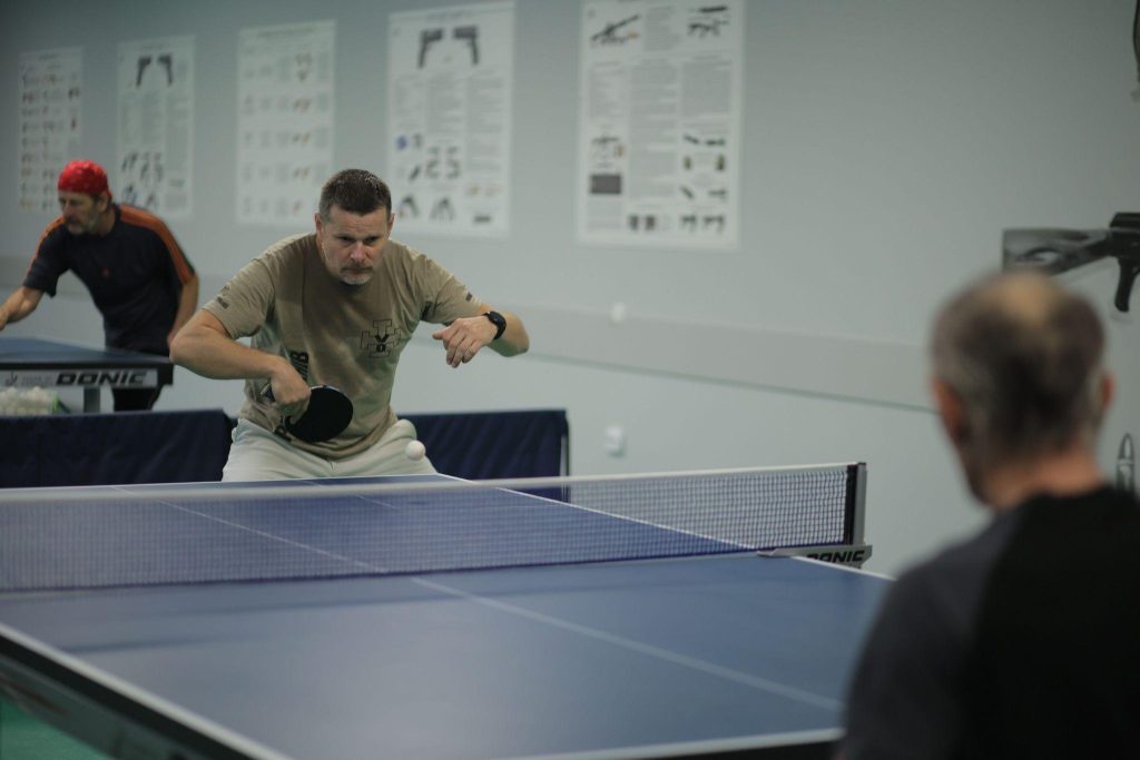 Table tennis training was conducted by Vasyl Koval, Champion of Ukraine, professional coach, and active advocate of veteran sports. The sessions brought together veterans of different ages and skill levels, forming a close-knit community of players. Table tennis helps veterans maintain physical fitness, improve reaction speed, coordination, and focus, while also reducing stress levels.