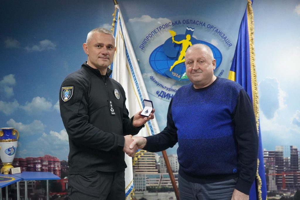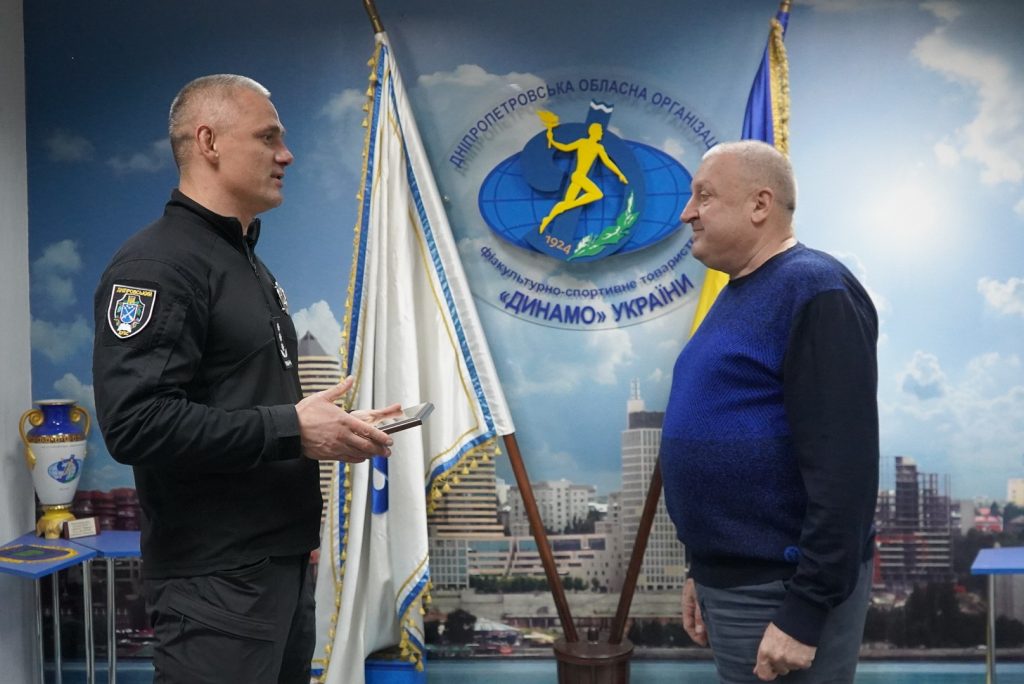 During the meeting with the first deputy head of the public organization “Dnipropetrovsk Regional Organization of the Physical-Sports Society ‘Dynamo’ of Ukraine” Serhii Barsehian, Ihor Kovalov emphasized the invaluable contribution of the society to the upbringing of athletes, support of young law enforcement officers and development of physical culture in the state.