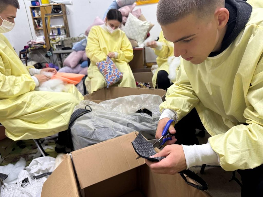 In addition to weaving, the cadets sort recyclable materials that are later used for transporting aid. The initiative of sewing pillows also continues: the students have already delivered over 70 fleece-made pillows to soldiers to help equip rest areas in challenging field conditions. From cutting the fabric to filling it with synthetic fiber, each stage of the work is carried out with gratitude and care.