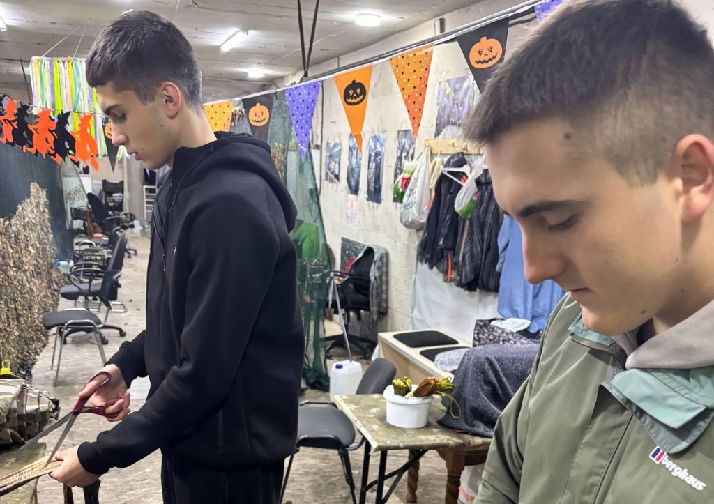 Together with the volunteer center “Knot of Help,” the students work weekly on weaving camouflage nets. The cadets select and cut fabric, tie knots, and deliver the finished nets to the active front-line areas. This strengthens the protection of Ukrainian fighters in their positions and helps them stay hidden from enemy reconnaissance.