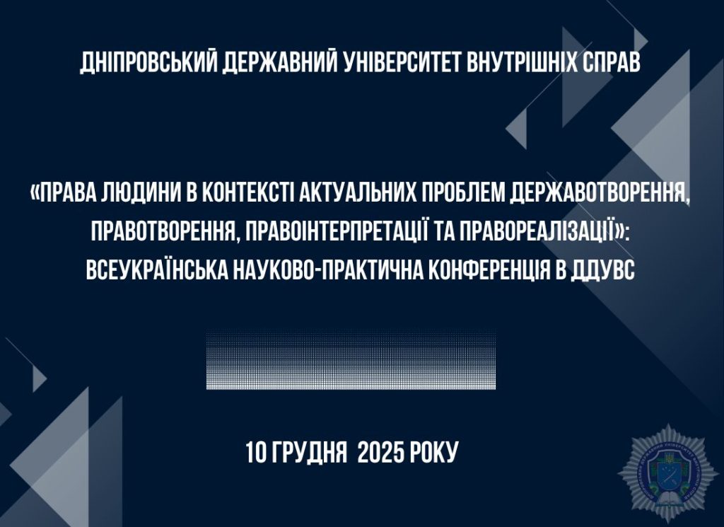 All-Ukrainian scientific-practical conference, dedicated to the 77th anniversary of the proclamation of the Universal Declaration of Human Rights, will take place on 10 December 2025 at the base of Dnipro State University of Internal Affairs.