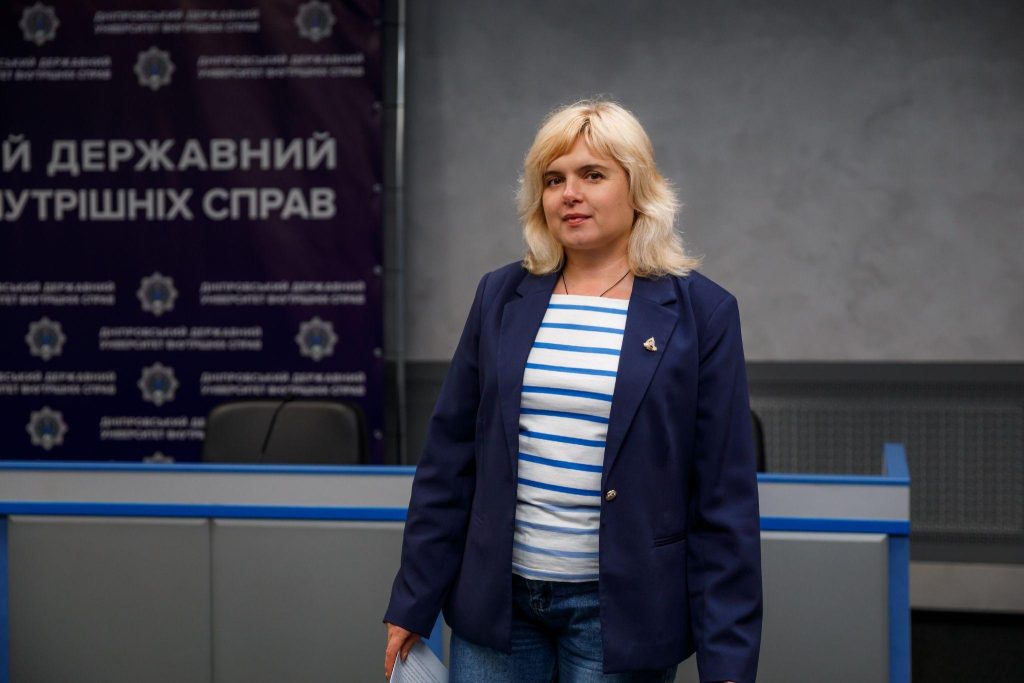 The first class on the topic “Psychological balance of a young police officer in conditions of martial law” was conducted by leading psychologist of the department of psychological support of DSUIA Hanna Mhlynets.