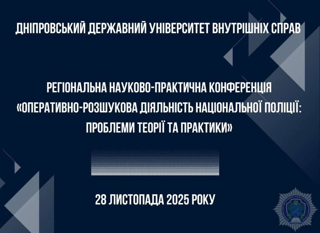 On November 28, 2025, on the basis of the Dnipro State University of Internal Affairs, a regional scientific and practical conference “Operational and Investigative Activity of the National Police: Problems of Theory and Practice” will be held.