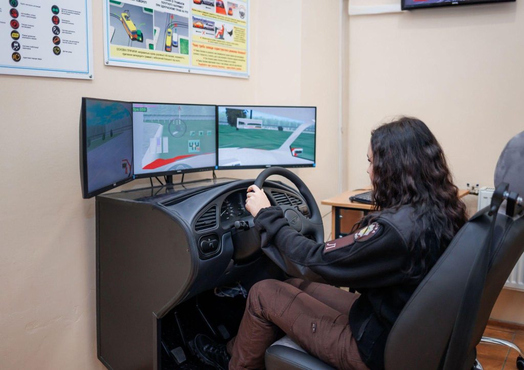 The practical block includes training on a special professional car simulator that allows to simulate real road situations and practice driving skills in safe conditions. Special attention is paid to trainings on providing pre-medical aid in road accidents.