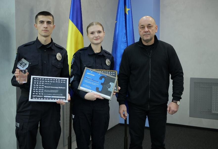 The finalists of the All-Ukrainian anti-corruption moot court (simulation of court proceedings) conducted among the best legal teams of the country representatives of the DSUIA team “Guardians of Transparency” cadets Oleksandr Yarovyi and Olena Lukianenko were awarded certificates diploma and a commemorative award.