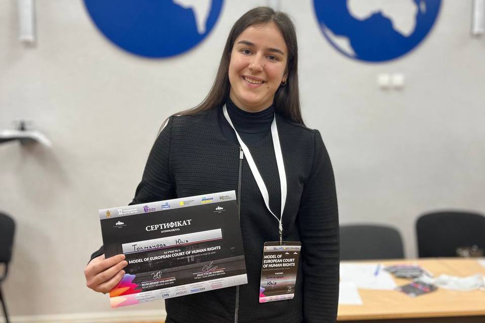 Dnipro State University of Internal Affairs was represented by third-year cadet of the Faculty of Training Specialists for Pre-Trial Investigation Bodies of the National Police of Ukraine Yuliia Tolmachova. Associate professor of the Department of Administrative Law and Process, Doctor of Philosophy in Law, senior police lieutenant Karyna Pisotska also took part in the event.