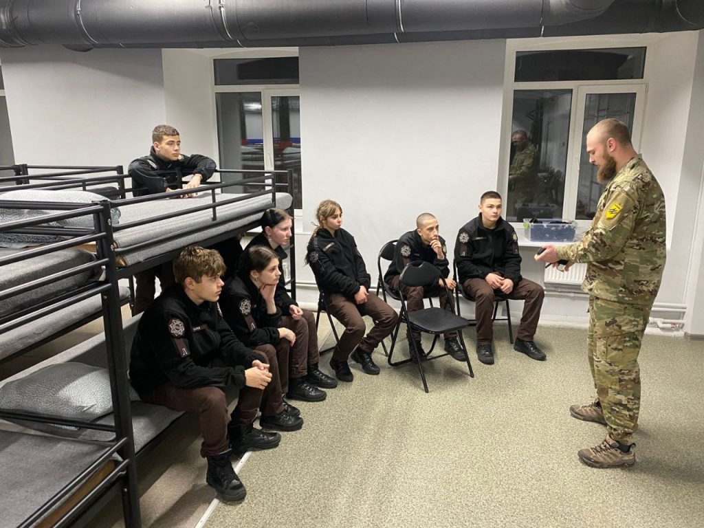 The second training session for students of the O. Hostishchev Dnipro Lyceum with a security focus and national-patriotic education was conducted by representatives of the Recruiting Center of the 12th Special Purpose Brigade “Azov” of the 1st Corps of the National Guard of Ukraine, call signs “Khimik” and “Nova.”