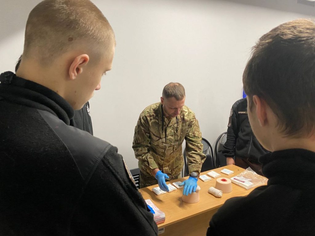 The tactical and theoretical course on providing pre-medical aid in combat conditions for lyceum students is ongoing.