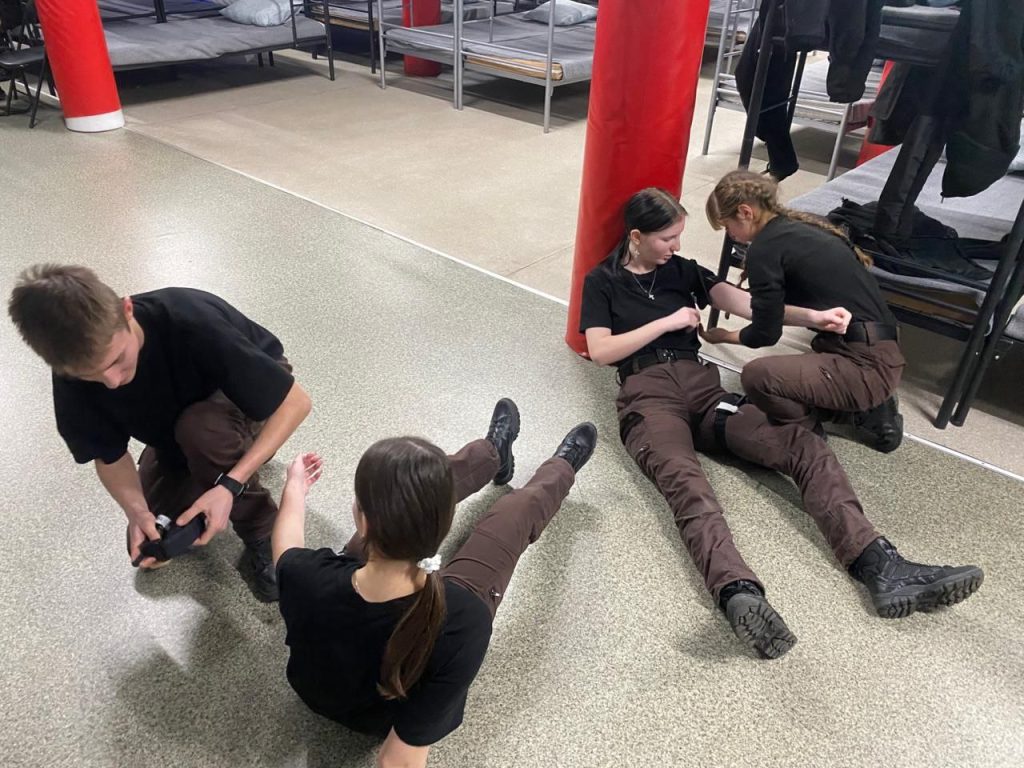 The tactical and theoretical course on providing pre-medical aid in combat conditions for lyceum students is ongoing.