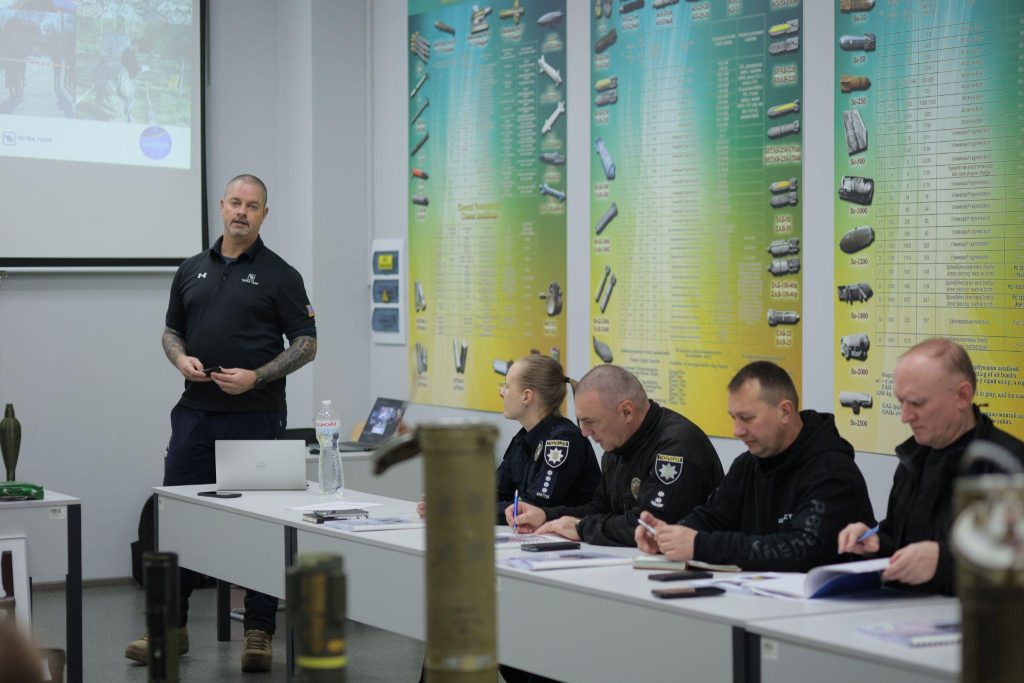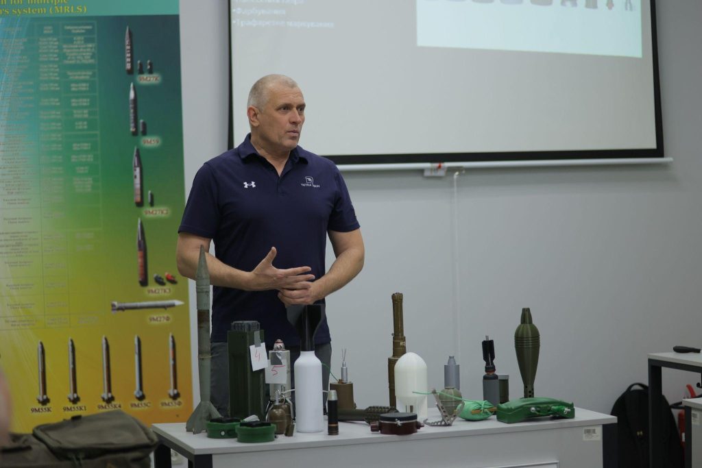 The event was opened by the prorector of DSUIA, police colonel Ihor Kovalov, who thanked representatives of the company TetraTech for cooperation and emphasized the relevance and practical significance of the knowledge they share. He stressed that awareness on issues of mine danger is especially important for police officers who serve in de-occupied territories.