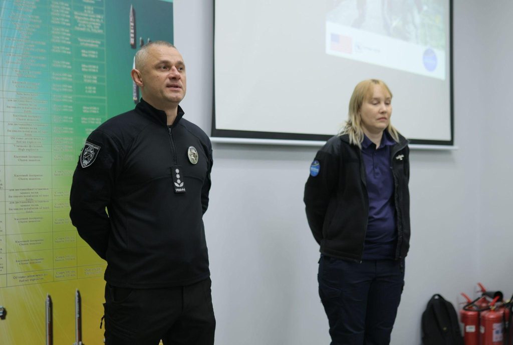 The event was opened by the prorector of DSUIA, police colonel Ihor Kovalov, who thanked representatives of the company TetraTech for cooperation and emphasized the relevance and practical significance of the knowledge they share. He stressed that awareness on issues of mine danger is especially important for police officers who serve in de-occupied territories.