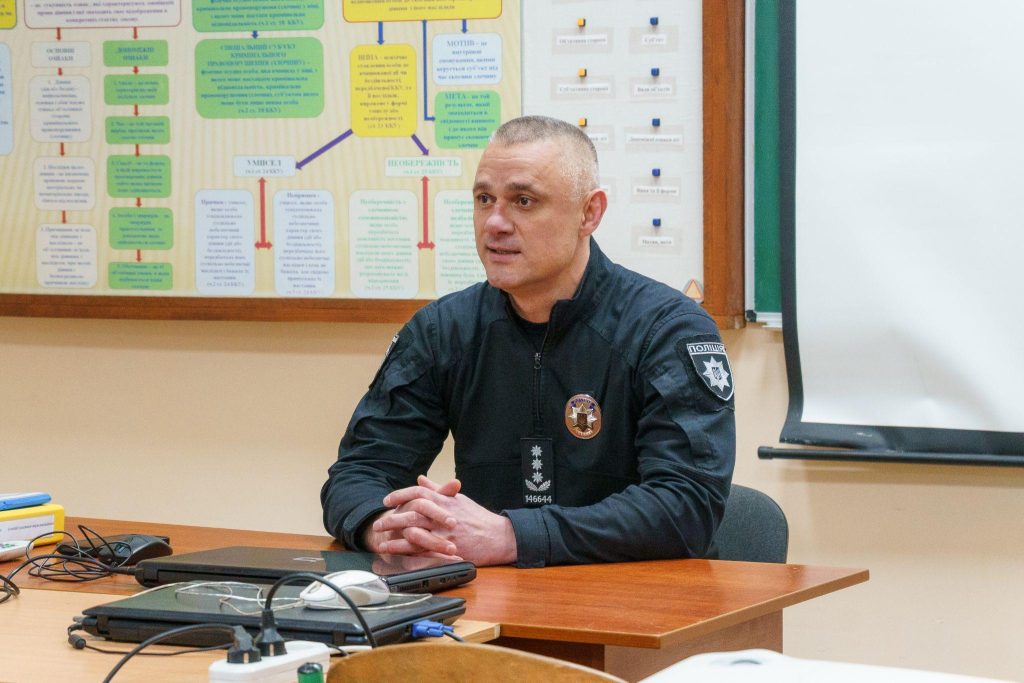 With police officers met the prorector of Dnipro State University of Internal Affairs, police colonel Ihor Kovalov.