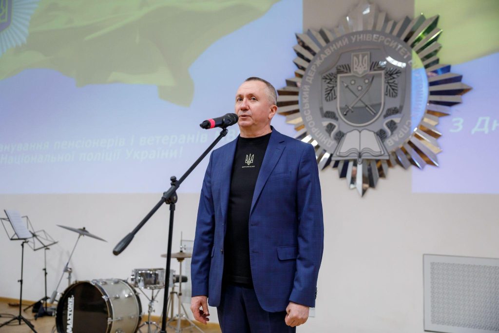 Veterans were greeted by the assistant to the rector of Dnipro State University of Internal Affairs Volodymyr Kovbasa. He thanked those present for the years of service in internal affairs bodies and the experience that they pass on to cadets as representatives of the next generations of law enforcement officers.
