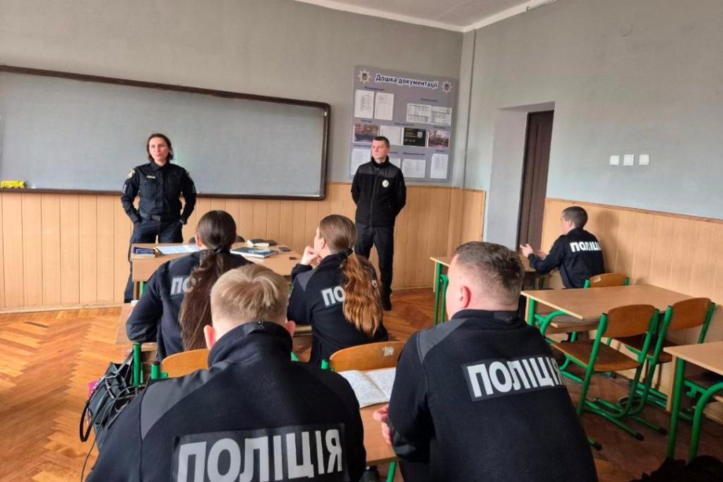 Police Lieutenant Colonel Yurii Soroko, Head of the Educational Safety Sector of Dnipro District Police Department No. 2 of the Main Directorate of the National Police in Dnipropetrovsk Region, and Police Lieutenant Colonel Olena Tkachova, Head of the Educational Safety Sector of the Main Directorate of the National Police in Dnipropetrovsk Region, shared their experience with the cadets.
