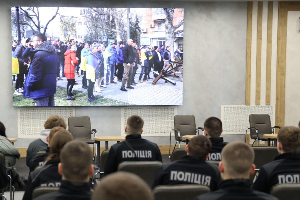 During the event, the cadets watched a film dedicated to the civic resistance and resilience of the residents of Kherson since the beginning of the full-scale invasion, after which they joined a discussion of the social and human rights issues raised in the film.