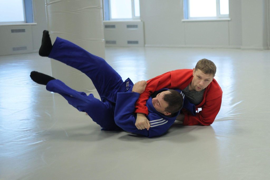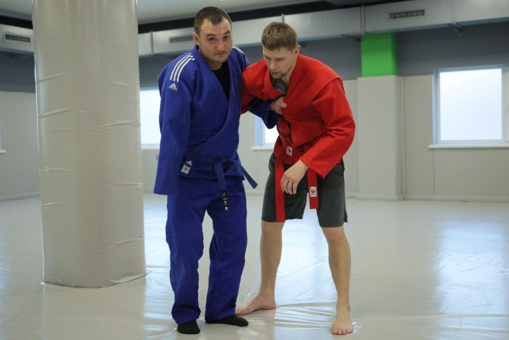 Together with the lecturer, athlete and military veteran Viacheslav Pryvalov practiced grips on clothing, unbalancing the opponent, throws, turnovers, etc.