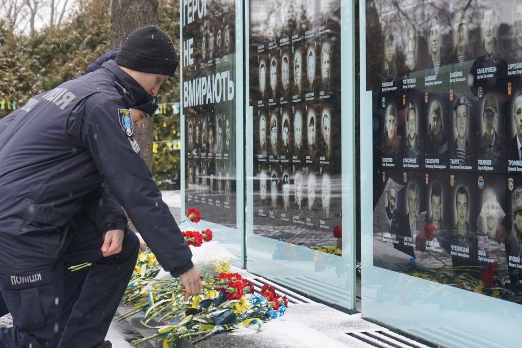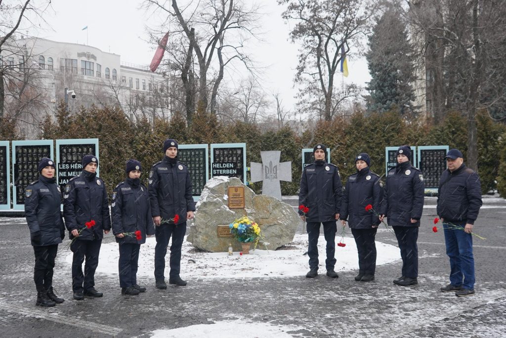 Future law enforcement officers laid flowers at the memorial and honored the Heroes of the Heavenly Hundred with a minute of silence. In this way, they paid tribute to the citizens who died defending democratic values, human rights, and Ukraine’s European choice.
