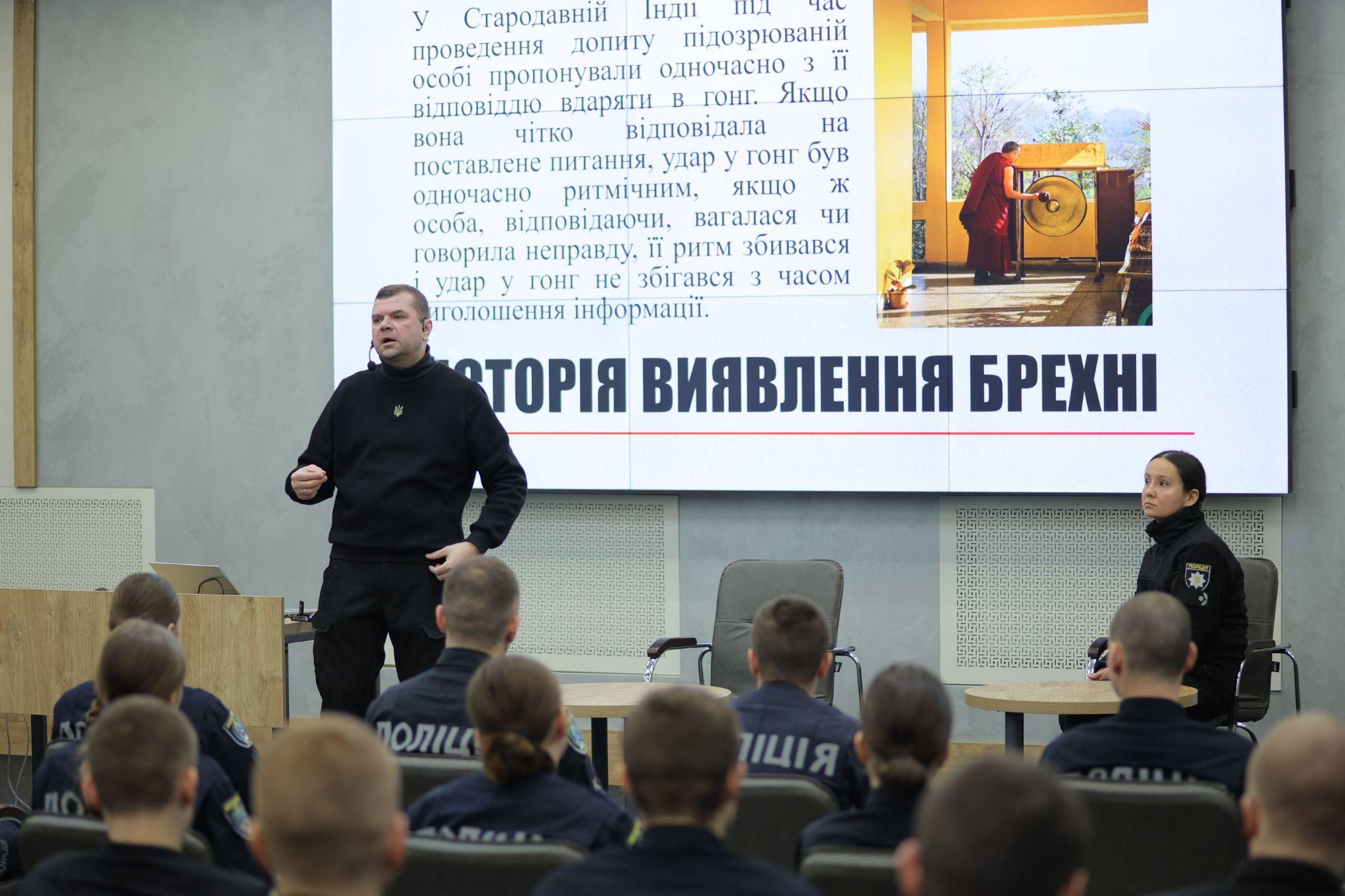 The elective class was conducted by the Head of the Information and Technical Support Department, polygraph specialist, Candidate of Legal Sciences, Police Lieutenant Colonel Oleksandr Shcherbyna.