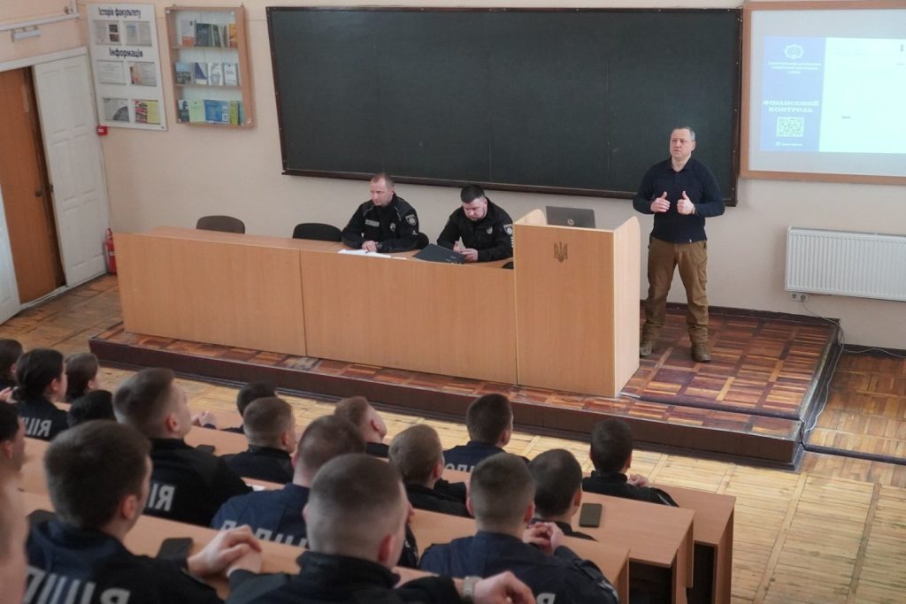 Ruslan Lupyr, the Authorized Officer for Anti-Corruption Activities of Dnipro State University of Internal Affairs, met with cadets of the Faculty for Training Specialists for Pre-Trial Investigation Bodies of the National Police of Ukraine.