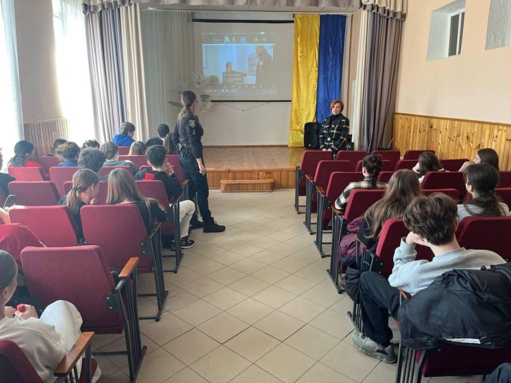 Cadets of the Faculty for Training Specialists for the Pre-Trial Investigation Units of the National Police of Ukraine, together with the Deputy Dean, Police Major Elvira Sydorova, held a meeting with senior students of the Lykhivskyi Lyceum. High school students were informed about the specifics of the educational process at the university, the living conditions of cadets, their daily routine, as well as opportunities for scientific, sports, and creative self-realization during their studies.