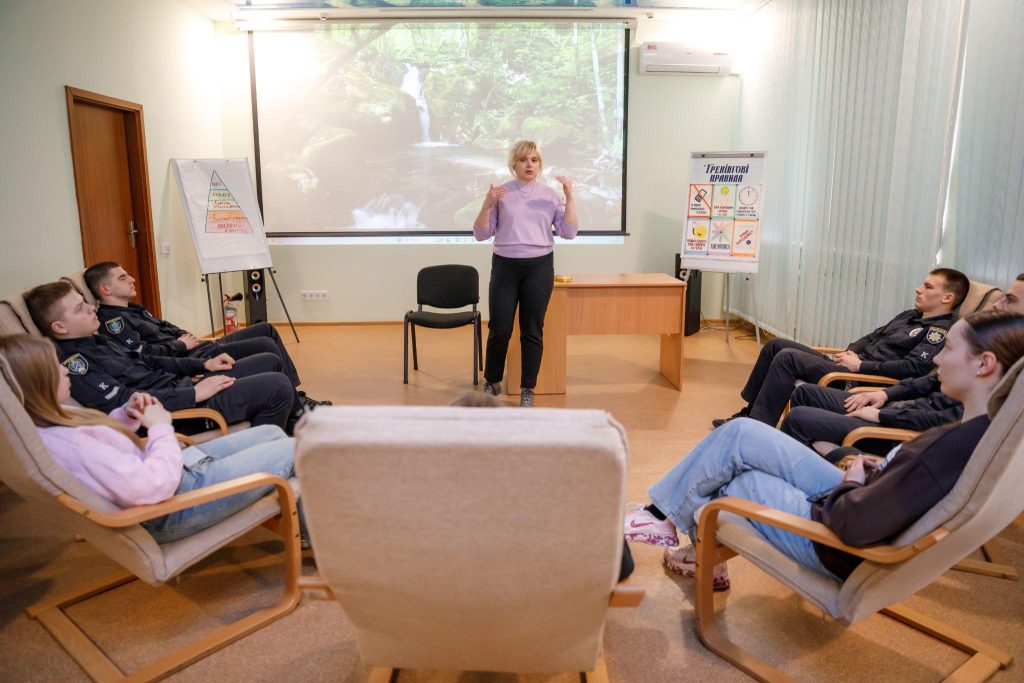 A complex of practical classes continues at Dnipro State University of Internal Affairs, during which cadets learn psychological techniques that help maintain their basic needs at a sufficient level, adapt to prolonged stress while preserving resource motivation for learning.