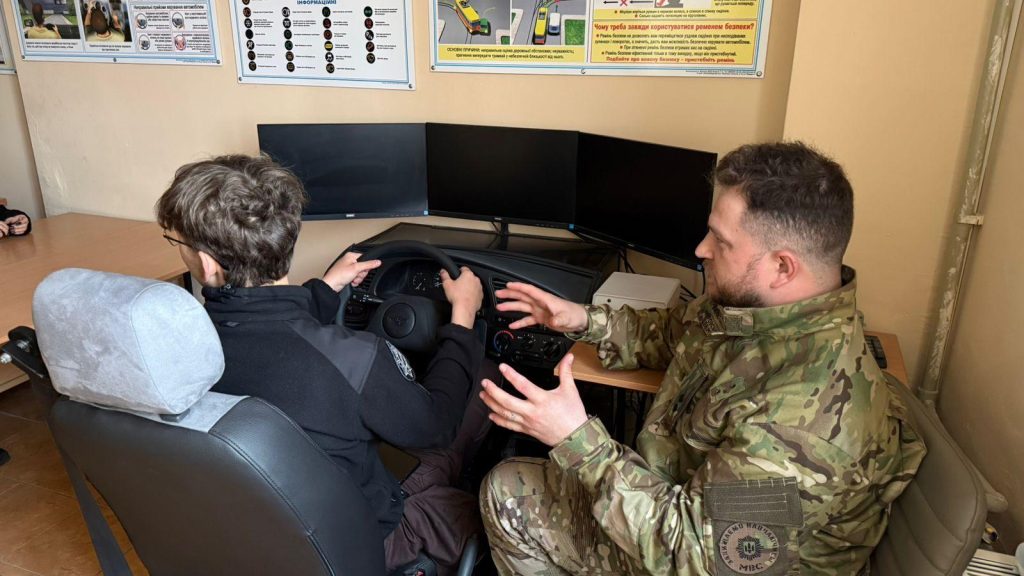 In particular, the lyceum students practiced the algorithm of preparing the driver’s workplace: correct adjustment of the seat according to height and body position, adjustment of rear-view mirrors to ensure maximum visibility, as well as mandatory use of seat belts.